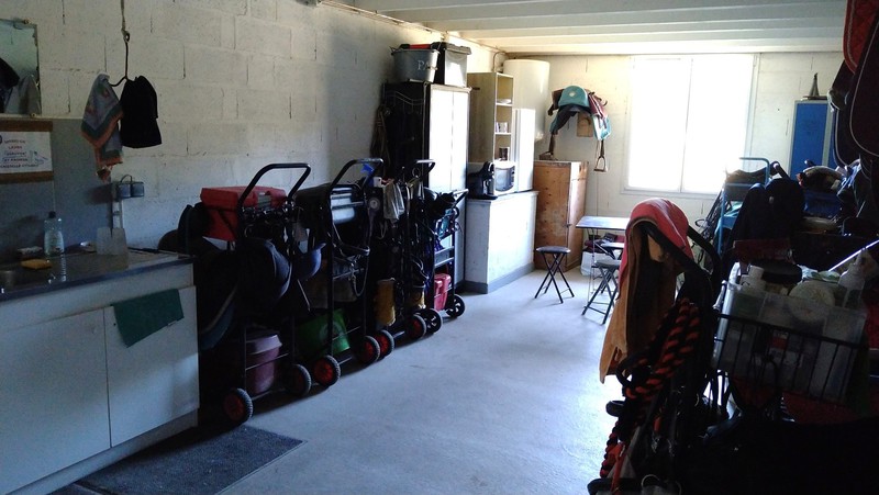 4 en bois et 9 en durs dans une écurie avec sellerie propriétaire et douche pour chevaux intérieure(eau chaude et froide)